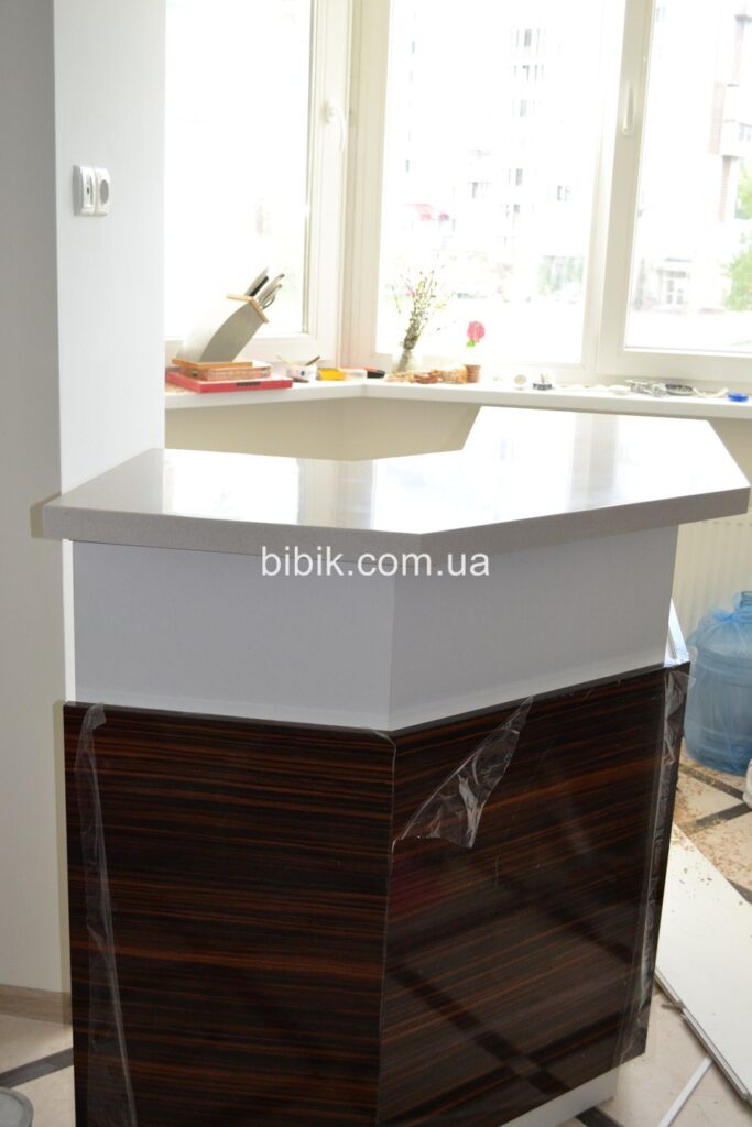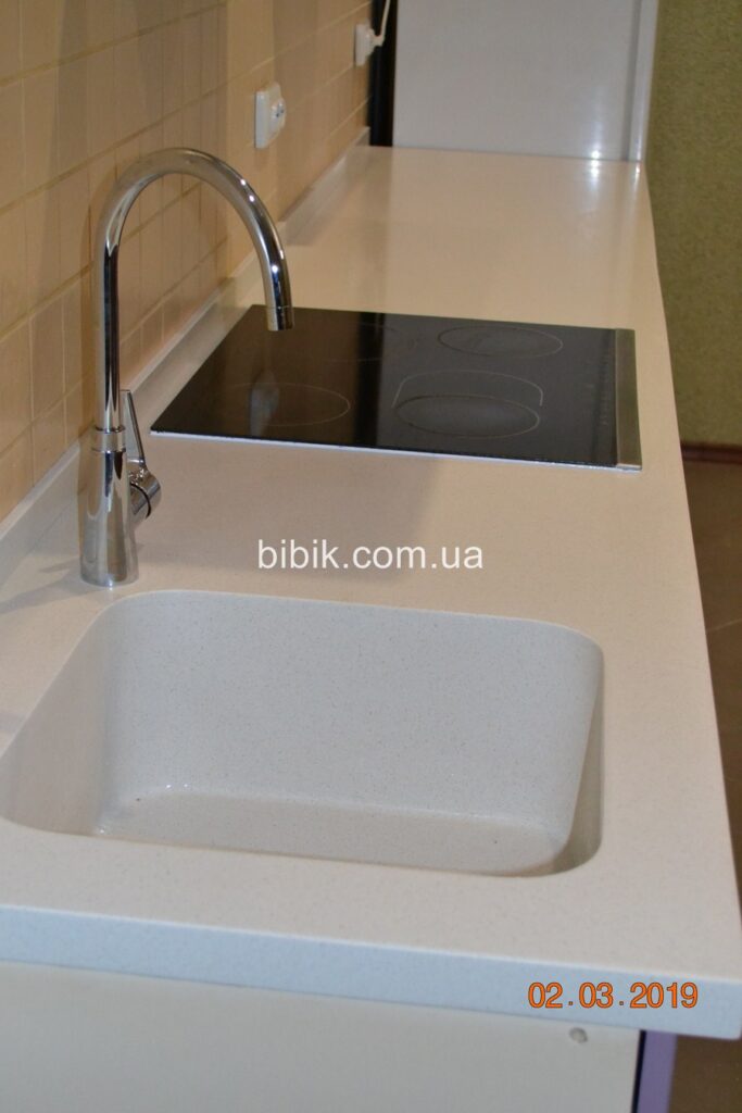 Прежде всего, стоит отметить чрезвычайную практичность этого материала. Искусственный камень испачкать очень проблематично, поэтому в таком помещении как кухня, его использование вполне актуально. Если камень не ярко белого цвета, а обычных темных и светлых природных оттенков следы жира и грязи на нем не видны. Специалисты советуют покрыть поверхность из искусственного камня полуматовым лаком, тогда никакой жир или грязь вам не страшны.